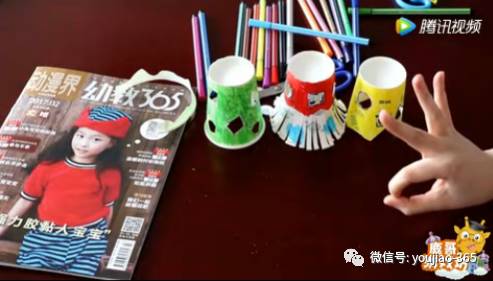 宝宝选择喜欢的颜色把纸杯涂一涂,